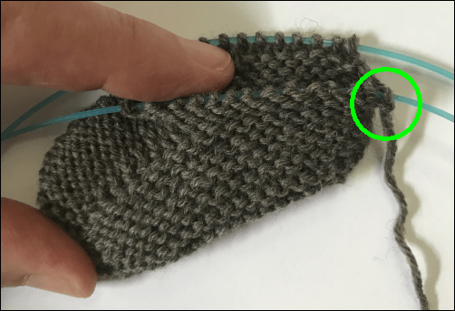 I’ve just finished the last round of the instep and my yarn is at the back needle. Ordinarily, I’d start knitting into that front needle with the yarn from the back.