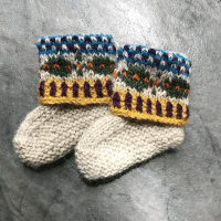 Secondly, because the Outer Cuff, when it’s finished, is typically turned down over the Inner (ribbed) Cuff in most of my patterns. If you work the entire Inner and Outer Cuff with the bootie or sock right side out, you’re working on the wrong side of the Outer Cuff and any colour changes are a little more awkward to achieve (at least for me they are!). Take my Fair Isle Booties pattern for example … you’d have to do all the stranded colourwork with the yarn carried in front of the work (on the purl, or wrong, side).