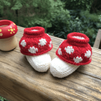 Thirdly, and this is related to my second reason, above, some of my patterns have you pick up stitches worked earlier to create extra layers or welts to create the quirky design. These would be even more awkward to work on the wrong side of the work. My Mushroom Booties pattern is a perfect example of this.