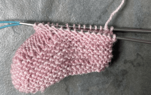 If this little gap bothers you, there’s a quick and easy trick to fix it! At the end of the final round of the Instep section, just slip and wrap the first stitch of the next round, then slip it back. Then turn your bootie or sock inside out to work the Inner and Outer Cuff sections and your tiny gap is gone! Here are a few pictures from a wip (this is my Cappuccino Booties pattern):